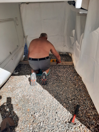 First, I added some gravel. Next, I made it somewhat level.