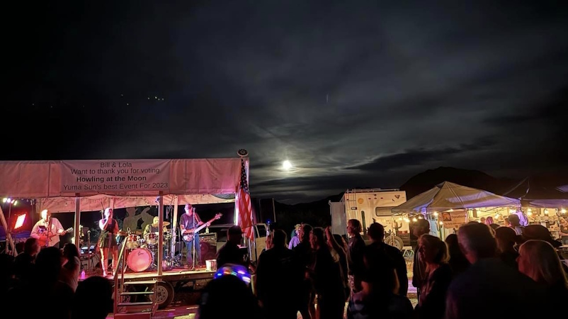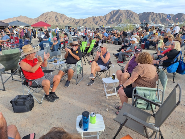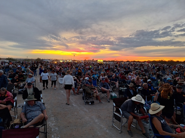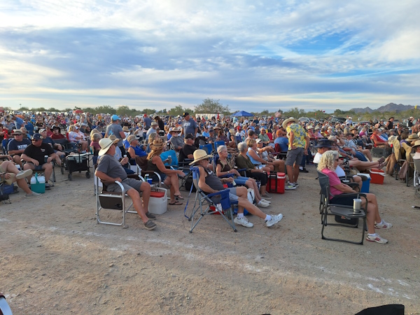 It is the evening with the most people attending. Howling at the Moon. They estimated the crowd at around 4,000. It is packed.