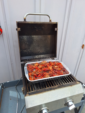 I treat myself to crawfish for lunch.