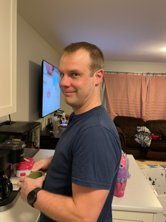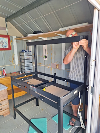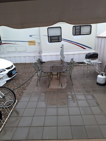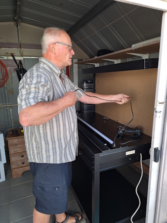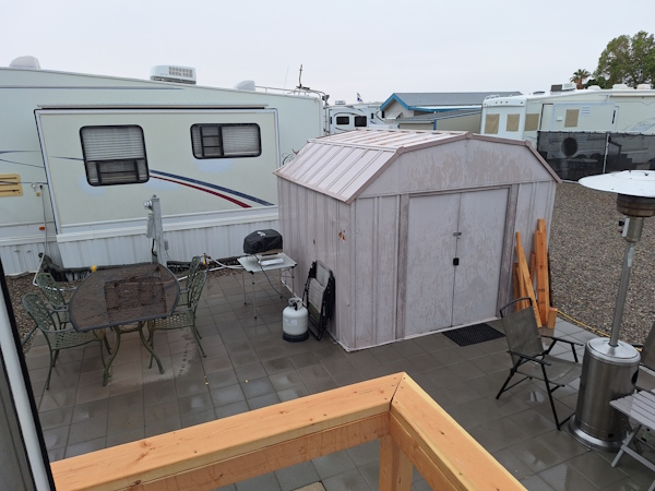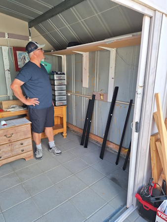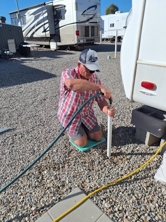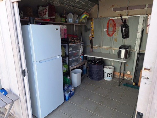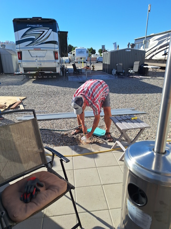 Jeremy is inspecting our trailer for water leaks while in storage.