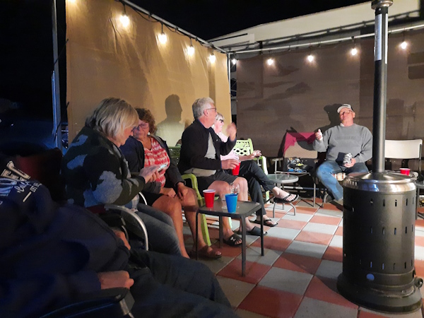 We keep on with music. The Krazy Kanucks band is playing on the patio