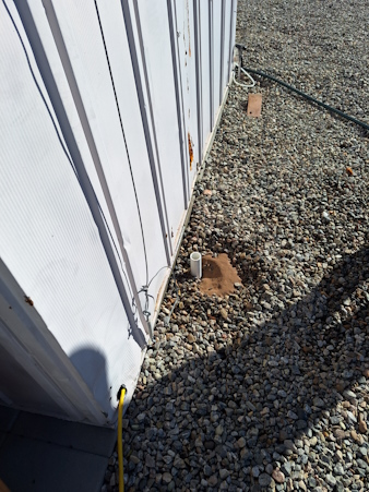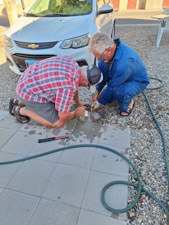 We use water pressure to dig the 2 foot long PVC pipe into the ground.