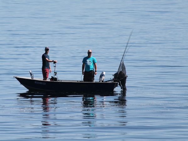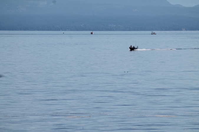 We got on the water by 1.45 p.m. We saw more than 30 boats fishing where we were. Nobody is catching fish.