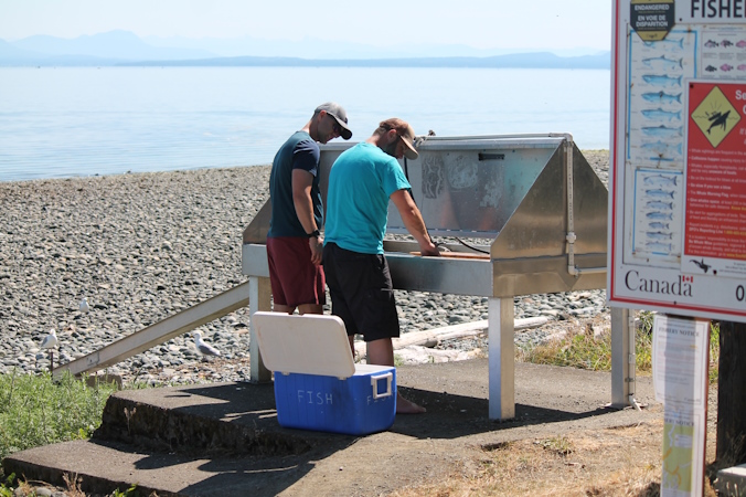 A fish cleaning station is available at Kitty Coleman. It is a very nice one.