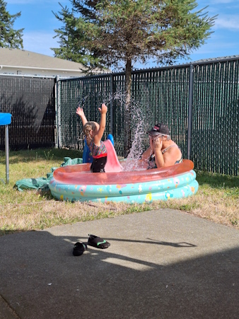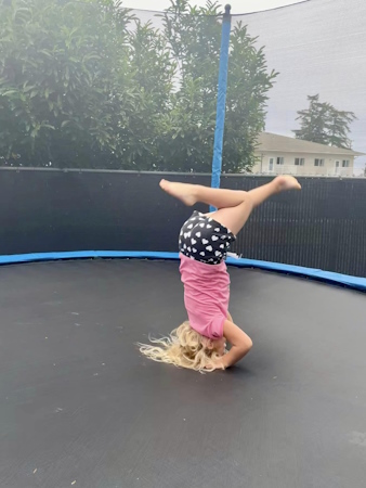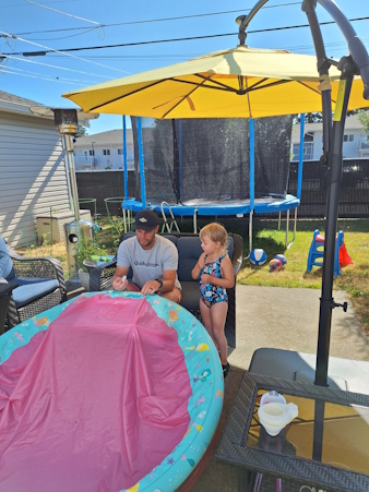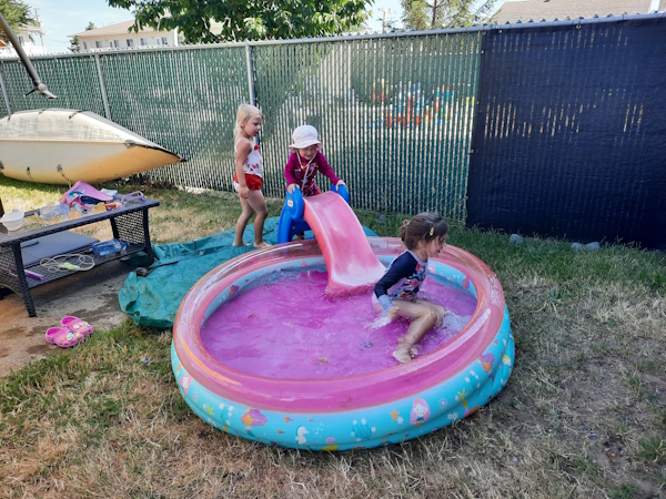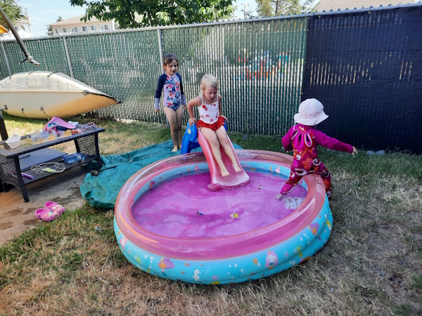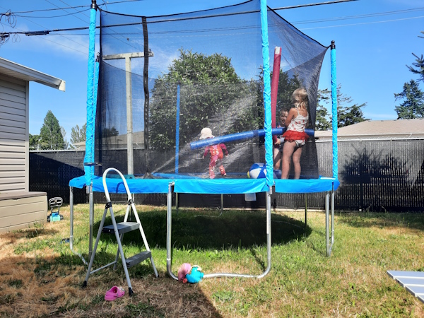 Jeremy's friend from work came with his two daughters to play with Natasha. They had fun in the pool and on the trampoline.