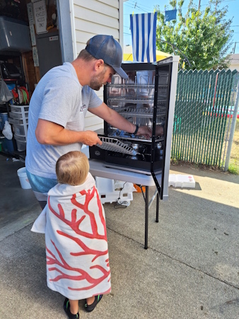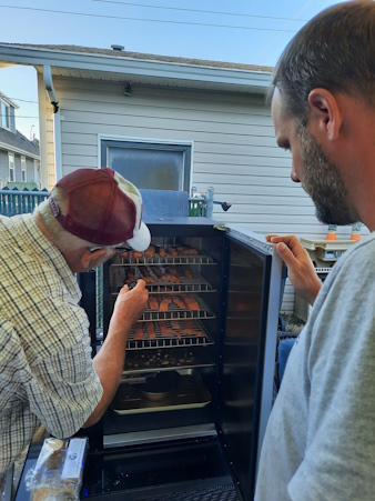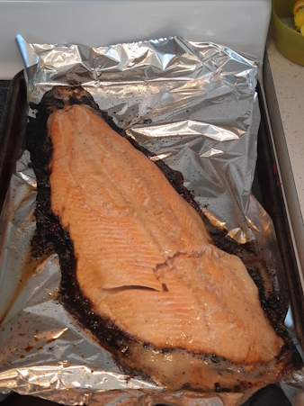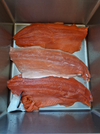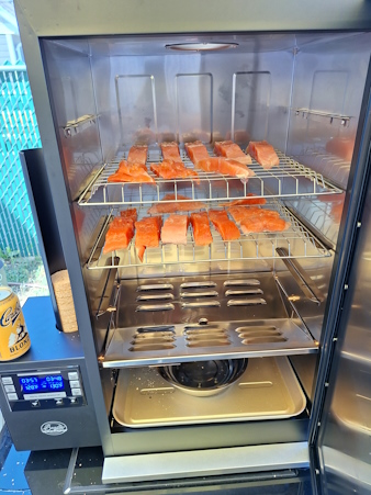the salmon we prepared. It will be smoked with apple wood smoke. The