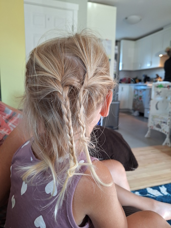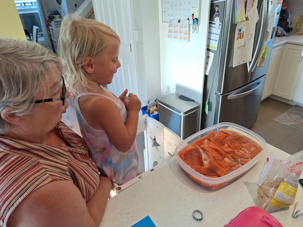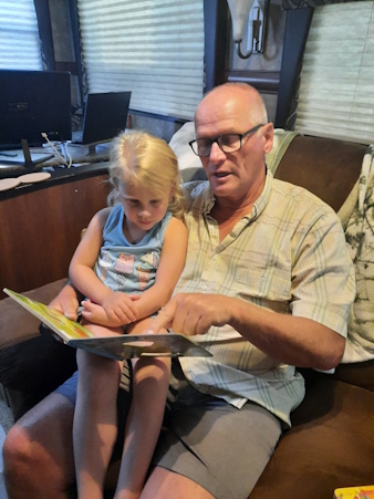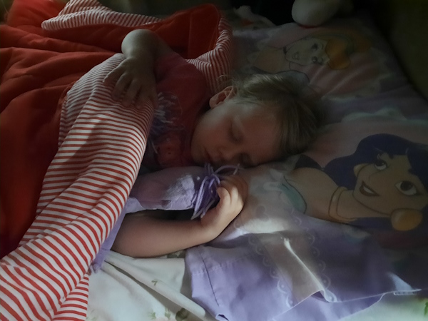 Natasha is with us in the trailer after supper. It is sleepover time.