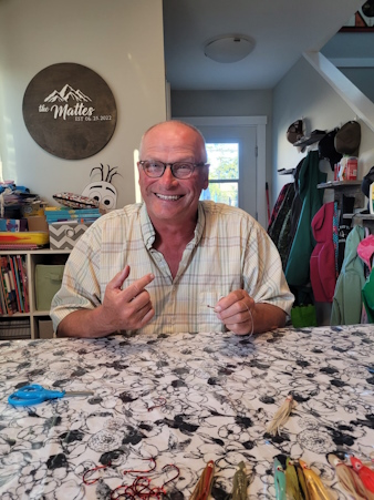 After Natasha went to bed, I went inside to help Jeremy tie some knots on lures.
