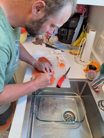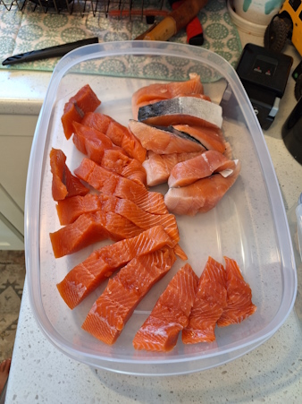Jeremy has not decided what he will do with the salmon, freeze them or smoke them.