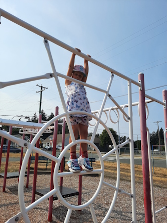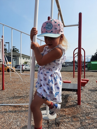 We had to stop at the red playground on our way back. We stopped for about half an hour.
