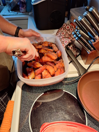 After three hours, we checked the internal temperature of the salmon. It will need another hour before it is done.