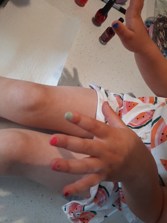 We have to wait a few minutes for Natasha's nail polish to dry before we head out.