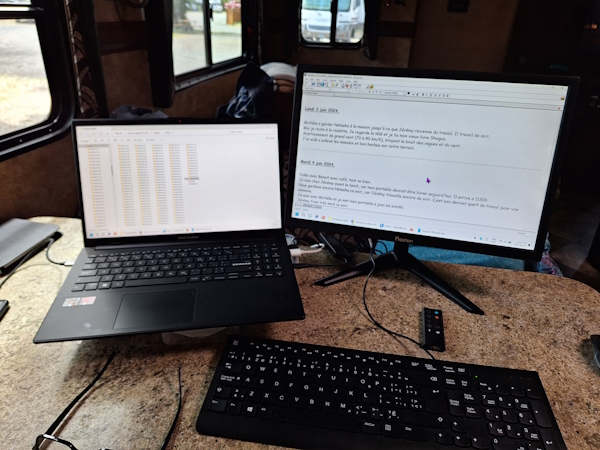 I am with Michele at the house. Once Natasha is in bed, I update my laptop.