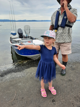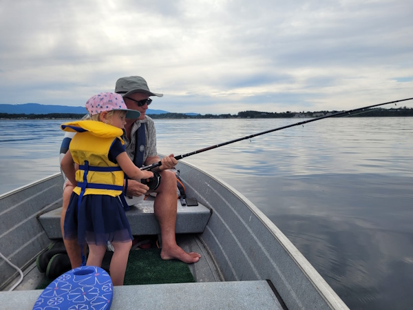 Natasha is pretty good for a 4 years old. She is casting her line like a pro.