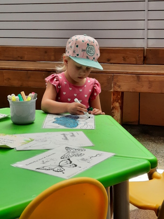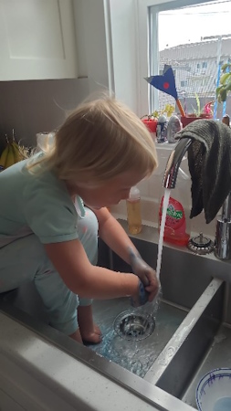 It is time to make some bubbles. She is trying to burst them with the "pincher".