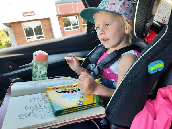 Grand-maman keeps Natasha busy as we drove to the hike location.