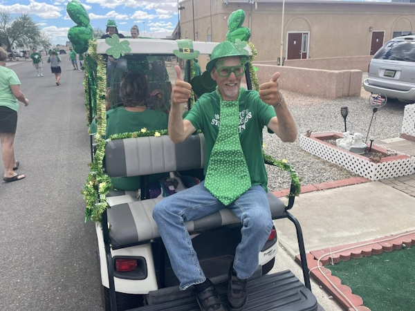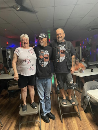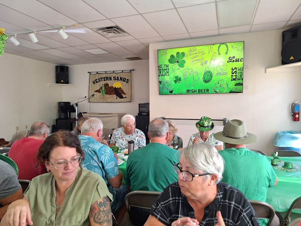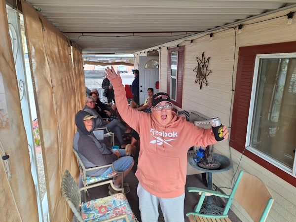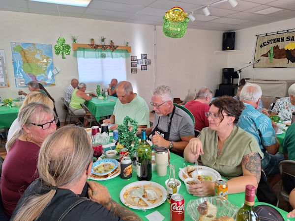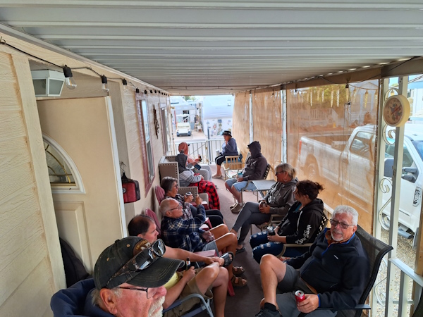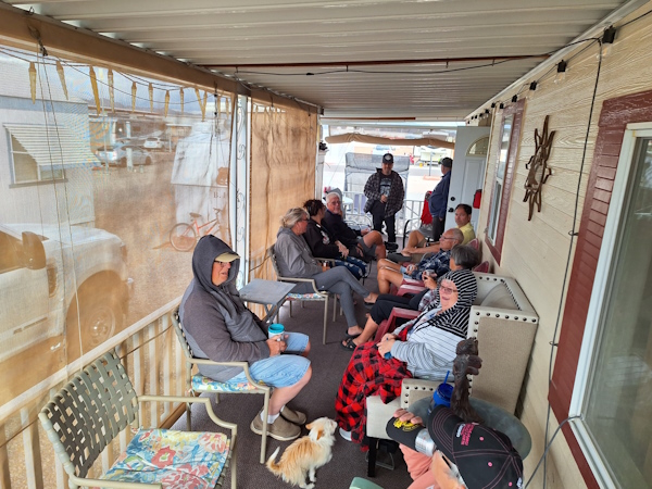 After the parade, we have a band on the patio, the Uka-Holics. We have more musicians than people listening to the band.