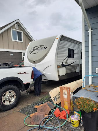 Once again, and maybe for the last time, Ed is here to move the trailer back to the storage place. In less than 40 minutes, it was all done, and we were back home. Thanks Ed.