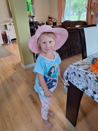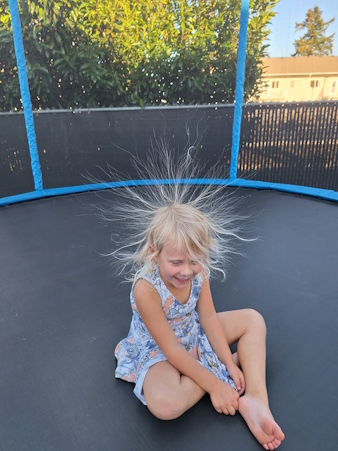 When she jumps on the trampoline, her hair ends up like this. It is so funny looking.