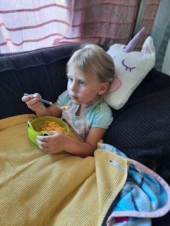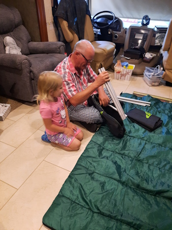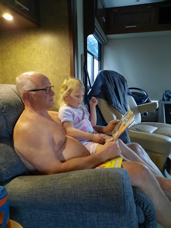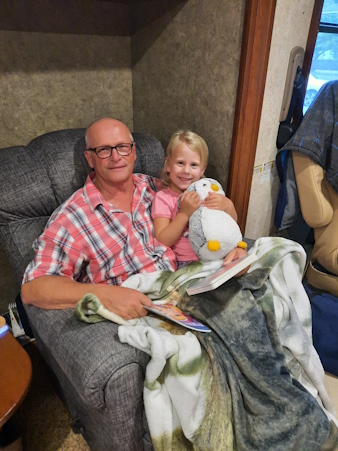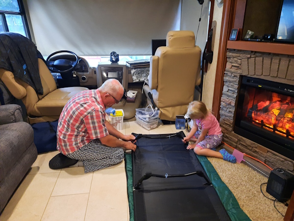 Natasha asked to sleep in the MH. Sure! This is a new adventure for her. She did not remember last summer when she slept in the MH.